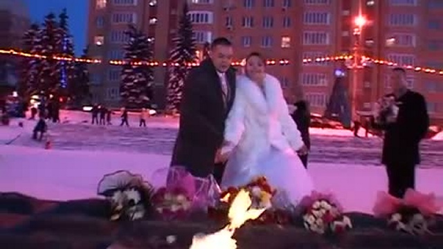 Зима,ночь,прогулка молодых после регистрации