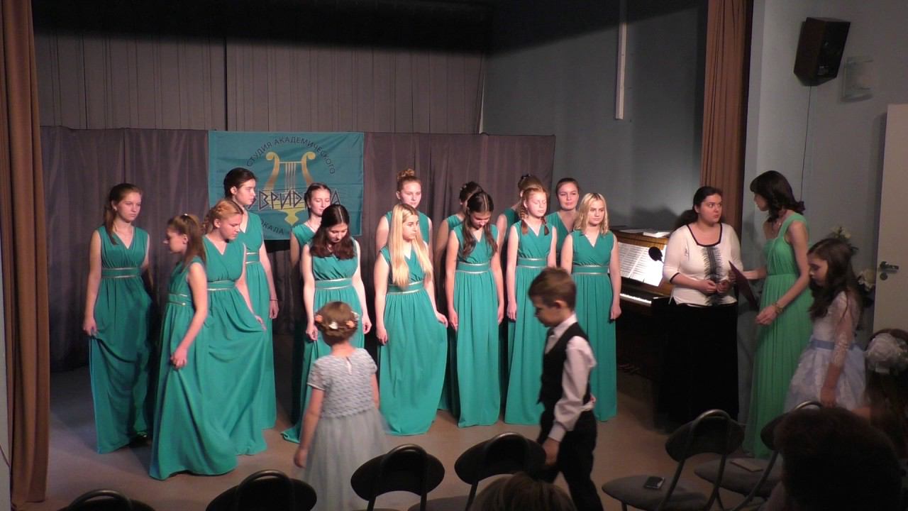 21 мая 2017 года Итоговый концерт по итогам учебного года студии академического вокала "Эвридика" ЦВР "На Сумском" Руководитель: Бочурина Анна Евгеньевна Концертмейстер: Сударева Мария Александровна "О России" - Муз. И.Матвиенко, сл. А.Шаганова "Хорошие девчата" - муз. А.Пахмутова, сл. М.Матусовского "Крейсер Аврора" - муз. В Шаинского, сл. М.Матусовского Исп. Учащиеся студии старшей и младшей группы, Солист Клим Михайлов