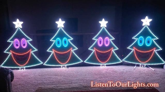 Talking Trees recreate the "Clark Lights The Lights" scene performed by Chevy Chase from the National Lampoon's Christmas Vacation movie with the "Hallelajah Chorus" by the Oratorio Society of New York. I use this as my show opener. Link to Sequence: https://drive.google.com/file/d/1CwodVHjiVf2JB2RV7SkCkKRvZWN2jL2i/view?usp=sharing Performed indoor test for 4 singing pixel trees. Total of 1400 pixels at 30% brightness running off of a Falcon F16v4 with one tree on each port. xLights 2022.14 used to sequence the lights. Running FPP on a Rasperry Pi 4 8GB to play the sequence. Using Meanwell LRS-350-12 with Falcon distro board for power injection. Purchased "EFL Singing Tree" with star topper from EFL-Designs.com spring 2022. https://www.efl-designs.com/product-page/efl-singing-tree Each tree has 300 WS2811 bullet pixels and the star topper has 50 pixels for a total of 350 pixels. Tree model was downloaded from EFL-Designs.com and Star model used xlights native star model. Star model is configured as 1 string of 50 Nodes/String with 2 layers with an Outer to Inner Ratio of 2.62