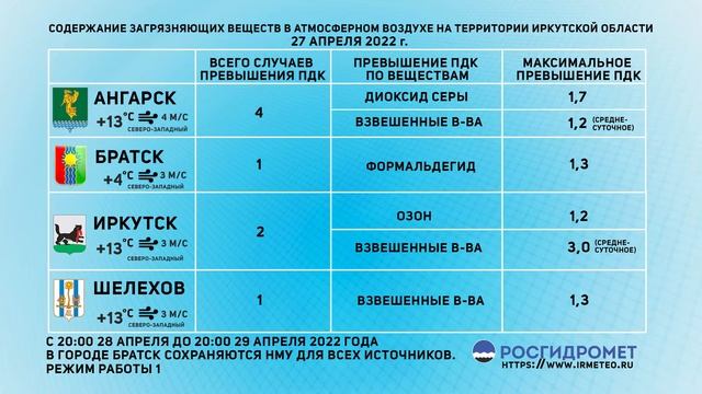 Мониторинг состояния атмосферного воздуха в городах Иркутской области