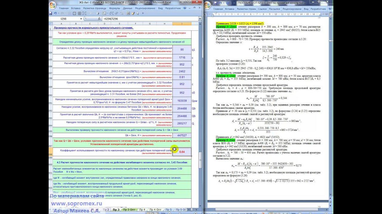Приобрести материалы "ЖБ-Автоматизация-1" можно на странице http://makeev.justclick.ru/gb1. Посмотреть все платные материалы http://shop.sopromex.ru/index.html. Пошаговое видео по решению задач 2-6 из Пособия к СП 52 в соответствие с СП 63, СП 52, метод предельных усилий в программном комплексе "Железобетон-Автоматизация-1": расчет изгибаемых в одной плоскости ЖБ элементов прямоугольного, таврового, двутаврового сечений без преднапряжения арматуры. Видео сопровождение более 60 решенных примеров, в том числе 14 задач из Пособия к СП 52: прочность нормального сечения, трещиностойкость, расчет прогибов, прочность наклонных сечений, вывод отчета в Word, PDF.