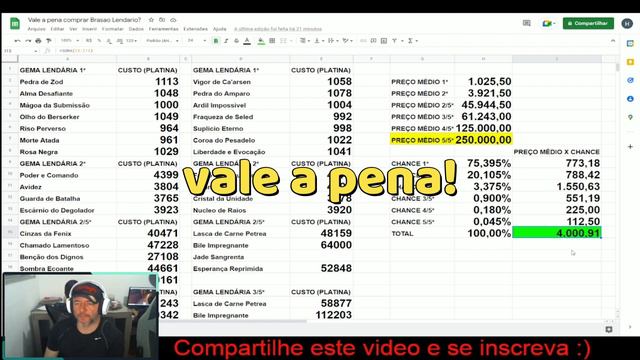 No final do video eu falo se vale a pena usar runas FA também! Da uma olhada! Clique aqui para ter sorte nos seus drops lendários: https://bit.ly/3A9PRI3 Compartilhe este vídeo com seus amigos! :) Lives todos os dias a partir das 22:00 no youtube! Acesse a planilha do vídeo no link abaixo: https://docs.google.com/spreadsheets/d/1dbrGSe11fWGcmm75w5twG-9lT460hw-v0XgJqPkP5Qw/edit?usp=sharing Confira os links da minha comunidade: 🤘 https://www.twitch.tv/rockerdad 🤘 https://twitter.com/RockerDad666 🤘 Playlist com todos os videos de dicas para Diablo Immortal: https://youtube.com/playlist?list=PLUWDm7Wp22sCLI0RJ__fNyQ1Cn1f_PSG9 ▀▀▀▀▀▀▀▀▀▀▀▀▀▀▀▀▀▀▀▀▀▀▀▀▀▀▀▀▀▀▀▀▀ E se você é novo em Diablo Immortal, inscreva-se no nosso canal, deixe o seu LIKE e compartilhe nossos vídeos em grupos de whatsapp, discord e demais mídias sociais! Precisamos do máximo de ajuda na luta contra as hordas do inferno! Qualquer dúvida, sugestão ou se quiser jogar papo fora, deixe sua mensagem nos comentários que eu responderei! ▀▀▀▀▀▀▀▀▀▀▀▀▀▀▀▀▀▀▀▀▀▀▀▀▀▀▀▀▀▀▀▀▀ Confira abaixo um índice com todos os nossos guias, notícias e análises sobre Diablo Immortal: Guia Diabólico #1 - Todas as moedas do jogo!!! https://youtu.be/HkB30vZWLlo Guia Diabólico #2 - Gemas Lendárias!!! https://youtu.be/v22y6beX5zw Guia Diabólico #3 - Dicas para subir rapido para o level 60 https://youtu.be/daSsHrDlYis Guia Diabolico #4 - Rotina diária https://youtu.be/xqjqxkDESu8 Guia Diabólico #5 - Tudo sobre Patuás https://youtu.be/U1h_4XUXDLA Guia Diabolico #6 - Tudo sobre a Fenda Anciã https://youtu.be/85CZIlmf41I Guia Diabólico #7 - Entenda tudo sobre todos os atributos do jogo https://youtu.be/MvvNZadJDNQ Guia Diabólico #8 - Spot bom pra farmar no mapa Tundra https://youtu.be/cZ4j6fQ6QpM Guia Diabólico #9 - Veja como vencer a fenda anciã em niveis mais difíceis https://youtu.be/Fk6gwGmHWWg Guia Diabólico #10 - Veja como fazer Corredeiras Kikuras em 5 minutinhos https://youtu.be/PbhikdR1W3Y Guia Diabólico #11 - Veja mais duas maneiras de aumentar o seu drop de item lendário além da fenda do desafio https://youtu.be/JWA7lzE5TeQ Guia Diabólico #12 - Build de Cruzado para PVE https://youtu.be/Mood09ps7E8 Guia Diabólico #13 - De onde vem o poder? https://youtu.be/B5aAdWlN-iE Guia Diabólico #14 - Como subir sua Taxa de Combate! https://youtu.be/TlpZd7Yj4BM Guia Diabólico #15 - Build de Cruzado para fazer Massacre na Fenda Anciã https://youtu.be/k3yOdyfZ2ZY Guia Diabólico #16 - Você precisa entrar num Grupo Guerreiro AGORA! https://youtu.be/LfOypXmzLs0 Guia Diabólico #17 - Tirando dúvidas sobre a Taxa de Combate https://youtu.be/6rg3sNJFmuk Guia Diabólico #18 - Melhor farm de XP do jogo https://youtu.be/77OexksQ3sU Guia Diabólico #19 - Arvore de Caça Tesouros Melhora Drop de Item Lendário? https://youtu.be/ZRKCsabcRJE Guia Diabólico #20 - Como farmar item T3 em T2 e item T2 em T1 https://youtu.be/C-6pbBia1uQ Guia Diabólico #21 - Circuito para Farmar Bestiário Vale Nebuloso https://youtu.be/Z044g5OTv74 Guia Diabólico #22 - Como combinar árvores de excelência https://youtu.be/eXmEn6RJJTI Guia Diabólico #23 - Tudo sobre brasões e como garantir sua gema lendária 5 estrelas https://youtu.be/-fu5by2dfaY Guia Diabólico #24 - Como obter 16 brasões lendários de GRAÇA! https://youtu.be/progrf5EAhM ▀▀▀▀▀▀▀▀▀▀▀▀▀▀▀▀▀▀▀▀▀▀▀▀▀▀▀▀▀▀▀▀▀ Diablo Immortal é o Diablo Mobile lançado recentemente pela Blizzard. Um action rpg com qualidades de mmorpg, com muitos loots, monstros, quests e dungeons para se aventurar. Você pode jogar Diablo Immortal pelo iphone (ios), android e no PC. Se você gostou de games como Diablo 1, Diablo 2 e Diablo 3, então tem grandes chances de gostar de Diablo Immortal também. E por ser gratuito (f2p), é uma ótima opção de passatempo até o lançamento de Diablo 4 ano que vem, em 2023. #diabloimmortal #diabloimmortalgameplay #diabloimmortalpc #diabloimmortalmobile #diabloimmortaldicas #mudancadeclasse #diabloimmortalguide #diablo #mmorpg #mobilegames #arpg #passedebatalha #diablo2 #diablo3 #diablo4 #blizzard #taxadecombate #diabloimmortalbarbarian #diabloimmortalrequisitos #diabloimmortalnecromancer #necromancer #pedradereforja