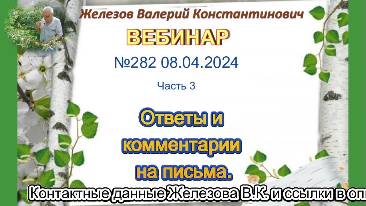 Железов Валерий. Вебинар 282. ч.3. Ответы и комментарии на письма.