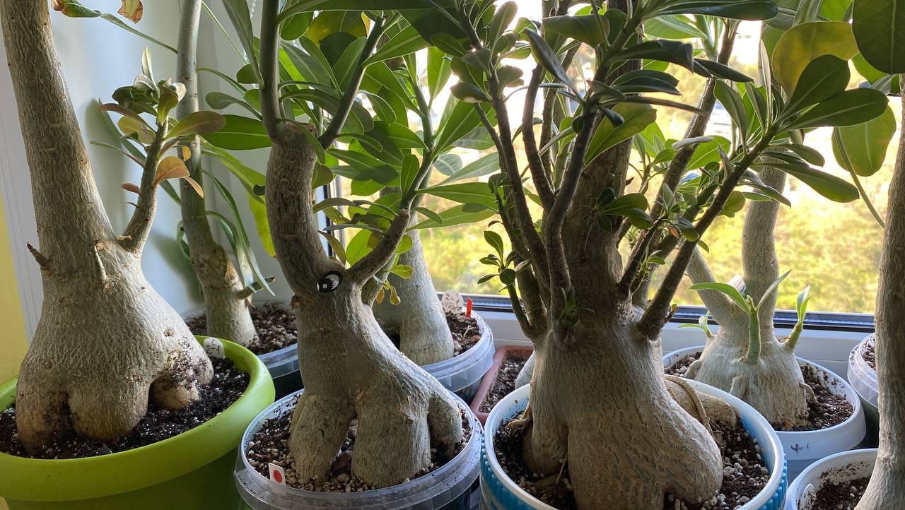 Адениумы в ошейниках. Скоро прививки. 6 сентября 2023 г.