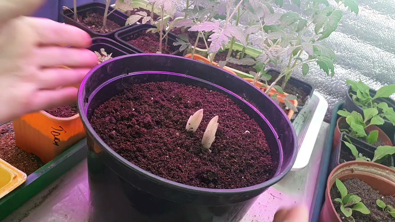 1.04. 22 пересадка дома проснувшейся вост. лилии в горшок.