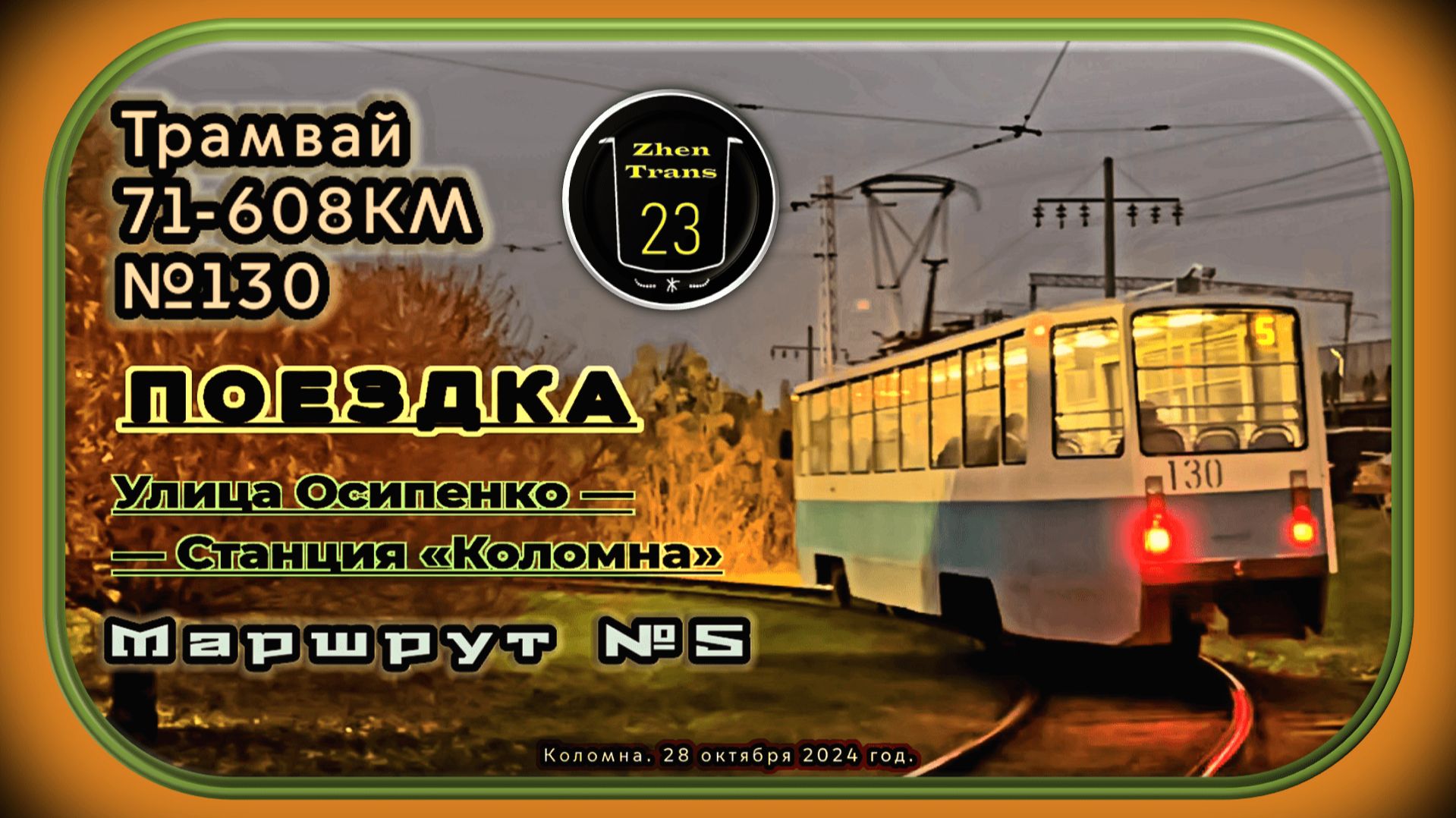 Вечерняя поездка на трамвае 71-608КМ №130 по маршруту №5 в Коломне.