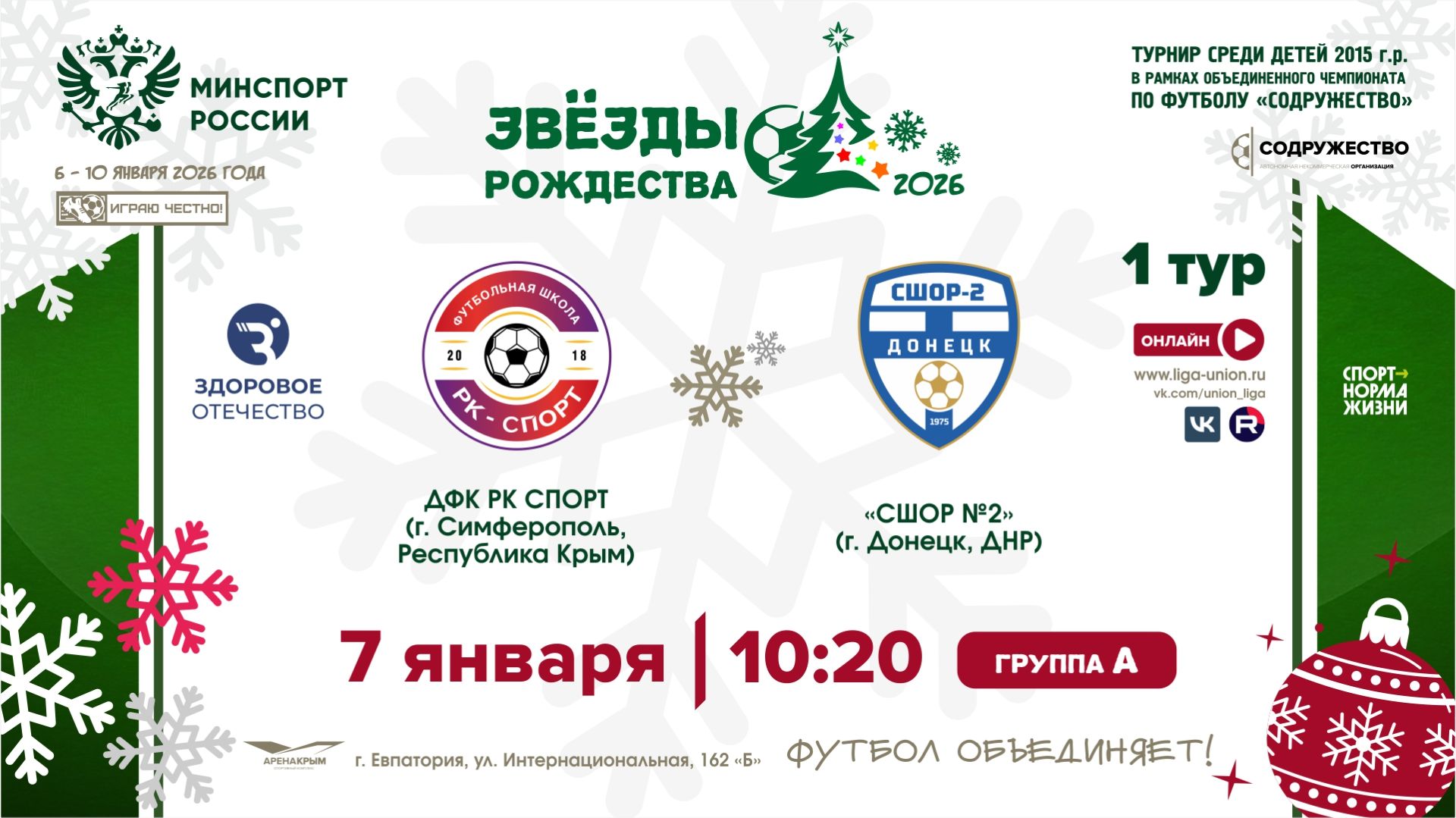 1 ТУР [А] | ДФШ «РК Спорт» (г. Симферополь, РК) - СШОР №2 (г. Донецк, ДНР) | 7.01.2026