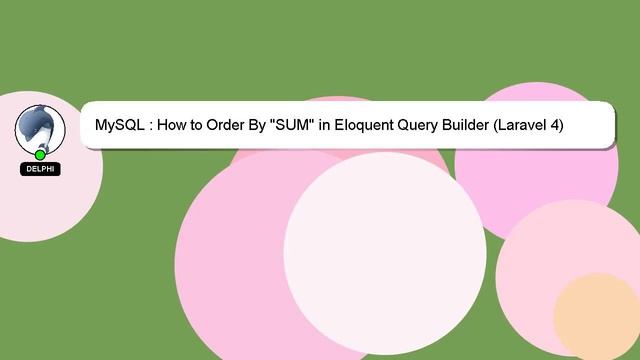 MySQL : How to Order By "SUM" in Eloquent Query Builder (Laravel 4) To Access My Live Chat Page, On Google, Search for "hows tech developer connect" As promised, I'm going to share a hidden feature with you. This is a YouTube's feature which works on Desktop. First, Make sure this video is playing. Then, type the letters 'awesome' on the keyboard. Your YouTube progress indicator will turn into a shimmering rainbow. A brief presentation of myself, Hello, I am Delphi. Let me help you with your questions. MySQL : How to Order By "SUM" in Eloquent Query Builder (Laravel 4) If you need more specific information, let me know by leaving a comment or starting a chat. If you have an answer or any relevant information to share, please comment below. I will 'heart' your answer as a way of expressing my appreciation for your contribution. "SUM" How Builder Order in 4) Query to By MySQL (Laravel : Eloquent