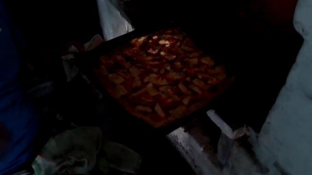 Готовим пиццу на открытом огне в русской печьки.