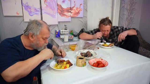 Сибирь зима холодно Обедаем сытным блюдом с отцом на кухне СВИНЫЕ РЁБРЫШКИ С КАРТОШКОЙ подвал ильича