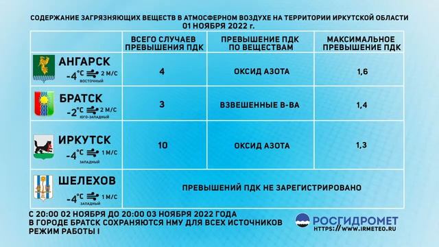 [02.11.2022] Мониторинг состояния атмосферного воздуха 01.11.2022