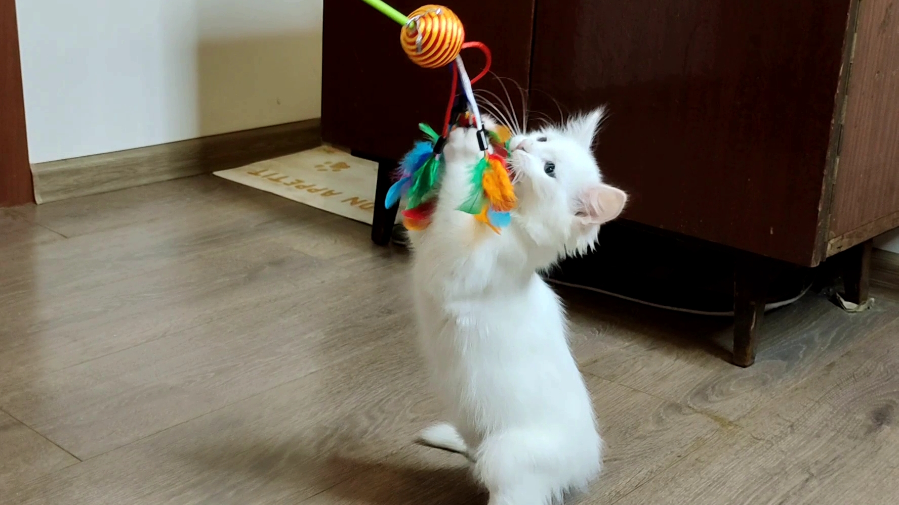 Папа играет с котятами Мией и Лизой новой игрушкой. часть 2
