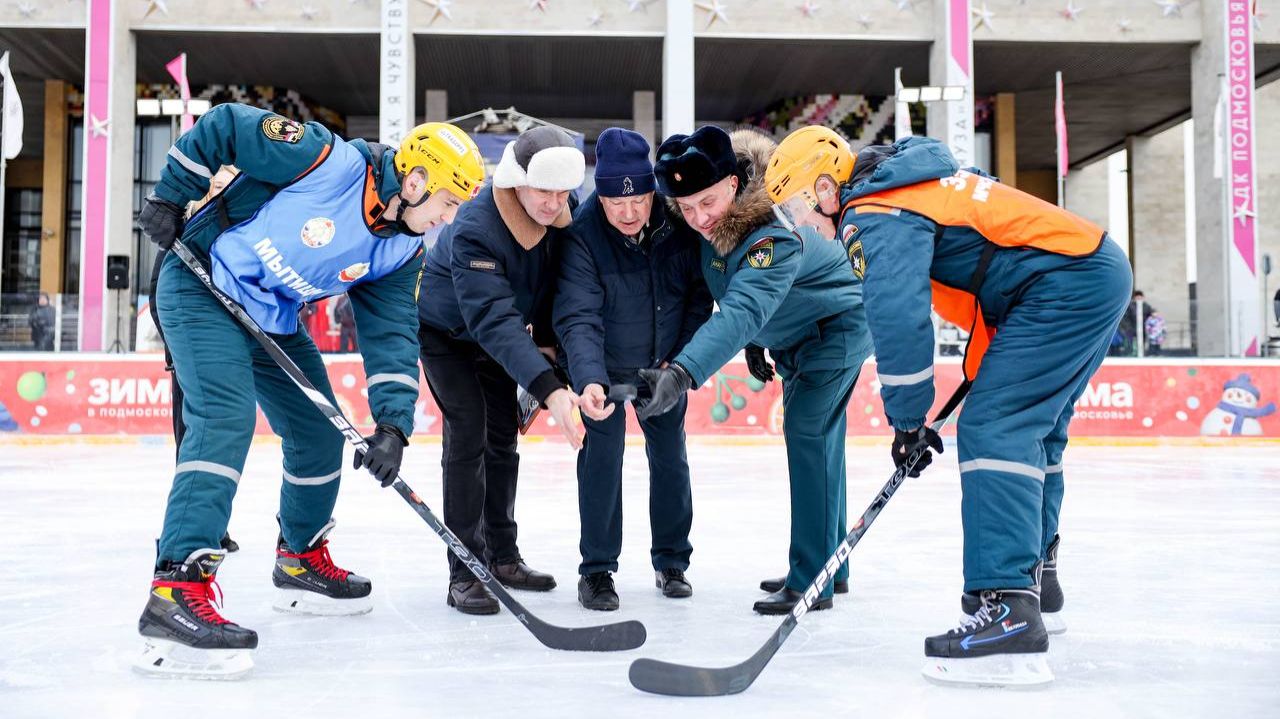 Спасатели на льду: в Мытищах прошел хоккейный матч между сотрудниками МЧС