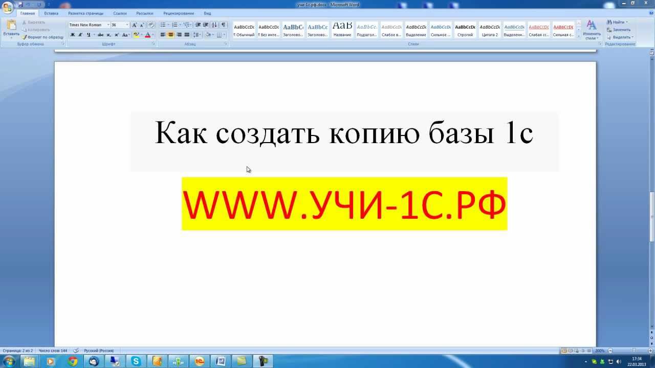 Много видео уроков по 1с на сайте http://xn---1-vlc2bgy.xn--p1ai http://www.youtube.com/watch?v=WOrk4cf4Fg0 В этом видео уроке рассказывается о том как создать копию базы 1с 8. Если вам понравилось это видео, подпишитесь на наш канал по 1с, кнопка под видео "подписаться".