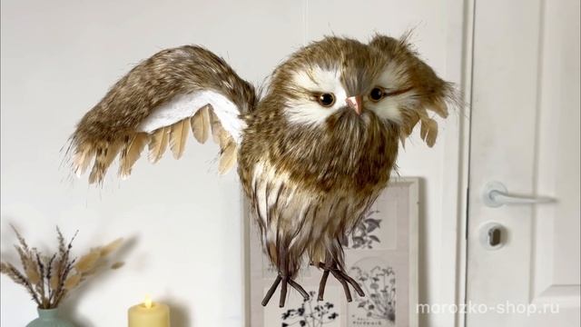 Декоративная фигура летящая СОВА ИДВИГ, искусственный мех, перо, 60 см, 1135231
