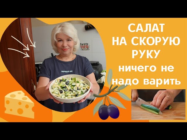 РЕЦЕПТ САЛАТА: Свежий огурец- 1шт Листья салата или пекинская капуста - небольшой пучок Маслины- 10-12шт Сыр твердый, можно плавленный- 100гр Соль, перец по вкусу Майонез + сметана