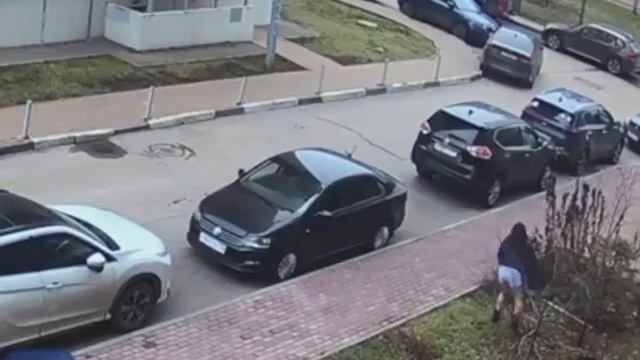 Девонька метнула крышку люка в машину