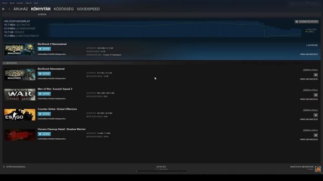Bioshock 1 és 2 Remastered letöltése Steam-en keresztül UPC Fiber Power 240-nel