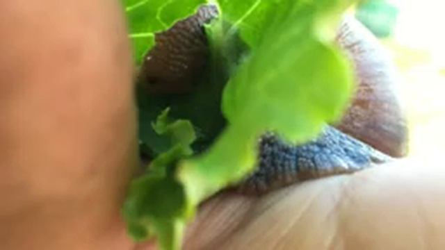 Гигантская улитка ест салат