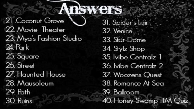 This Video Has The Answers To The Woozworld Monster High Ancient Vampires Hearts Challenge! Just Go To These Unitz By Searching Them In The "Search Unitz" And Find The Heart In That Unitz! I Hope I Helped! C; 1. Monster High: Frights, Camera, Action! 2. Central Plaza 3. Big Woozen 2 - Red Room 4. Big Woozen 2 - Blue Room 5. Big Woozen Season 2 - Loft 6. Mya's Late Night Show 7. What The Wooz!? 8. Mya's Collection Boutique 9. Max's Game Show 10. Style Watch Unitz 11. WoozGuidez Center 12. Stop Bullying HQ 13. Woozworld Help Center 14. Movez It 15. Cave 16. Fairy Chamber 17. Woozworld Skatepark 18. Asteroid 19. Spaceship 20. Avenue 21. Coconut Grove 22. Movie Theater 23. Mya's Fashion Studio 24. Park 25. Square 26. Street 27. Haunted House 28. Mausoleum 29. Path 30. Ruins 31. Spider's Lair 32. Venice 33. Star-Dome 34. Stylz Shop 35. IVibe Central 1 36. IVibe Central 2 37. Woozens Quests 38. Romance At Sea 39. Ballroom 40. Honey Swamp TM Quiz