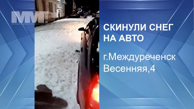 Коммунальщики повредили автомобиль снегом в Междуреченске