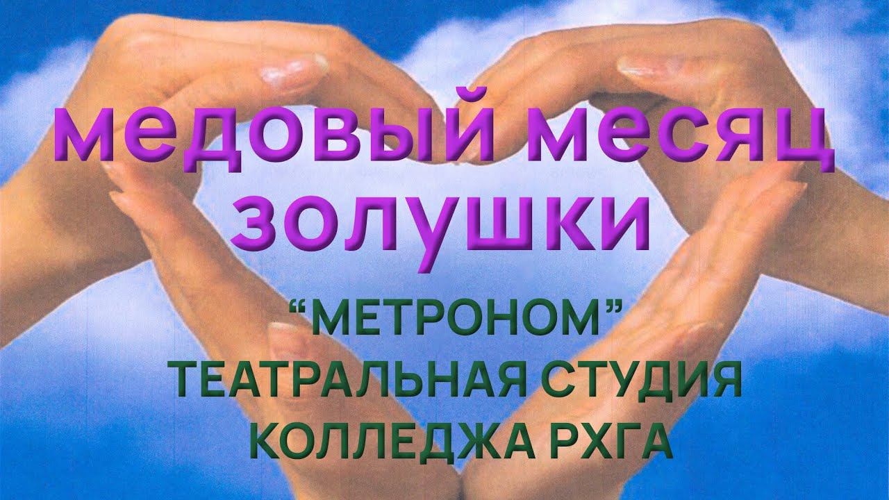 Премьерный спектакль театральной студии «Метроном» Колледжа РХГА По пьесе Г. Полонского «Медовый месяц Золушки» 7 марта 2023 г. Лирическая фантазия на вечную тему Действующие лица и исполнители: Принц Лариэль – Артемий Елагин Золушка, она же Принцесса Анна-Вероника – Татьяна Вештебей Король Алкид Второй Уступчивый – Артём Муляев Адмирал Гробани – Василий Шпринг Герцогиня Гортензия – Алина Денисенко Министр эстетики Фуэтель – Лина Киреева Министр свежих известий Бум-Бумажо – Ольга Хотченкова Мачеха Золушки мадам Колун – Эвелина Вайсова Ученик Феи – Ян Садыков Служанка Люси – Виталина Прохорова Невесты — Ангелина Белоус, Василиса Купцова Режиссер постановщик – Анна Чужинова Звукооператор – Анастасия Медведева Художник по визуальным эффектам – Ян Садыков Заведующая труппой – Эвелина Вайсова Помощник режиссёра – Лина Киреева Художник – Василиса Купцова Костюмеры – Лина Киреева, Виталина Прохорова, Ангелина Белоус Реквизиторы – Хотченкова Ольга, Алина Денисенко Декораторы – Артемий Елагин, Артём Муляев, Василий Шпринг Администратор – Татьяна Вештебель В спектакле звучит музыка Эдуарда Артемьева Санкт-Петербург, Колледж РХГА, 2023 г. РХГА в сети: https://vk.com/rhgaru Официальный сайт http://www.rhga.ru