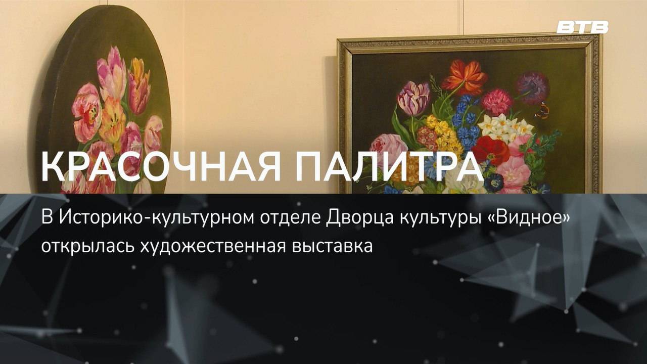 В Историко-культурном отделе ДК «Видное» открылась художественная выставка «Красочная палитра». Эта экспозиция стала ярким событием для всех любителей искусства, ведь она объединила работы опытной художницы Инны Сизовой и её юных учеников. О том, какие картины украшают выставку расскажет наш корреспондент Олеся Мордвинова.