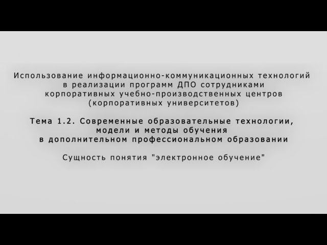 Современные образовательные технологии, модели и методы обучения в дополнительном профессиональном образовании