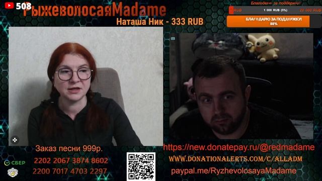 Стримы проводим на новом канале по ссылке https://www.youtube.com/channel/UCpd7cP8a8TbXkhRfZB9-V1g также стримы можно смотреть на следующих платформах https://vkplay.live/rmadame https://vk.com/video/ @RMadame https://boosty.to/ryzhevolosaya-madame Свежие нарезки можно смотреть https://dzen.ru/redheadmadamchat?share_to=link https://www.youtube.com/@RMadam1 https://www.youtube.com/@RMadame Пообщаться в голосовом чате, обсудить новости и узнать первым о предстоящем стриме можно подписавшись на телеграмм канал https://t.me/redheadMadamchat Все беседы ведутся с развлекательной целью и не направлены на разжигание какой либо вражды. Поддержать меня карта Сбер 2202 2067 3874 8602, Тинькофф 2200 7009 0724 4924 или голосовым донатом по ссылке https://www.donationalerts.com/r/alladm