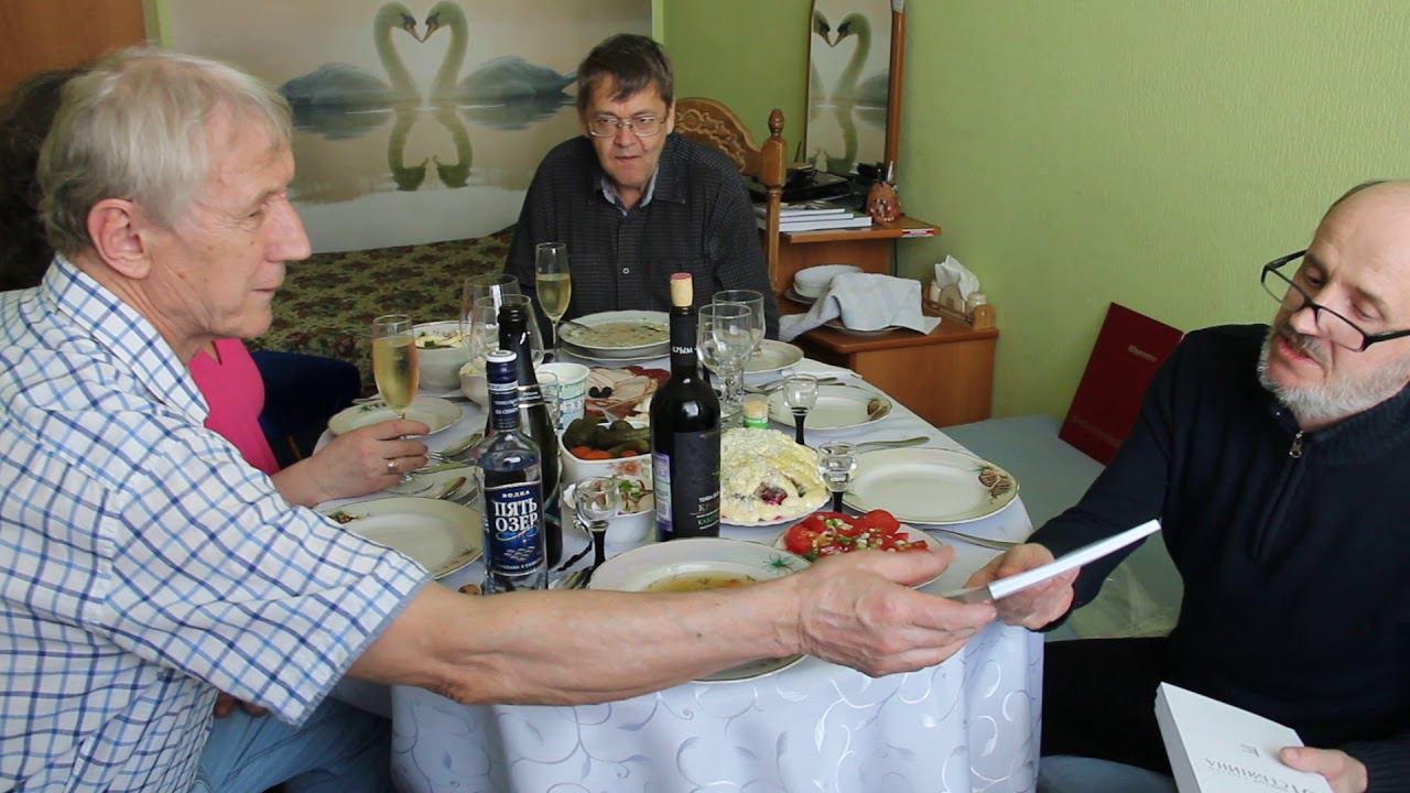 Владимир Мисюк и Борис Скотневский поздравляют Виктора Стрельца с 70-летием.