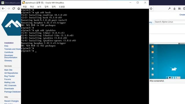 Alpine Linux https://www.alpinelinux.org Alpine Install: from a disc to a virtualbox machine single only https://wiki.alpinelinux.org/wiki/Alpine_Install:_from_a_disc_to_a_virtualbox_machine_single_only Xfce Setup https://wiki.alpinelinux.org/wiki/Xfce_Setup DistroWatch https://distrowatch.com/ 디스트로와치 2021-02-20기준 페이지 방문 순위 #24 00:00 시작 06:41 Xfce 설치 09:37 버추얼박스 게스트 확장 설치 BGM : Jeon Michaels(전마이클스) https://www.youtube.com/channel/UCocuzIKfHSWEbY9-c_RNI-Q