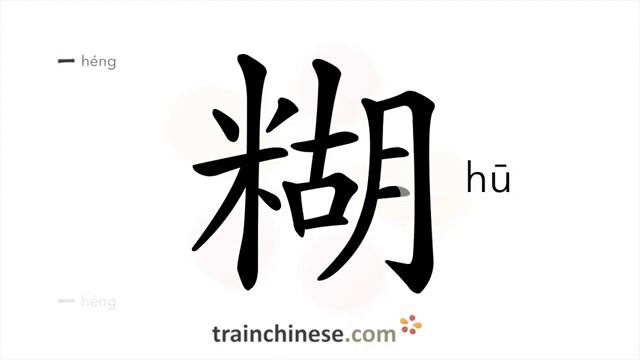 糊 (hū) paste; scorched; muddy; to plaster; cream