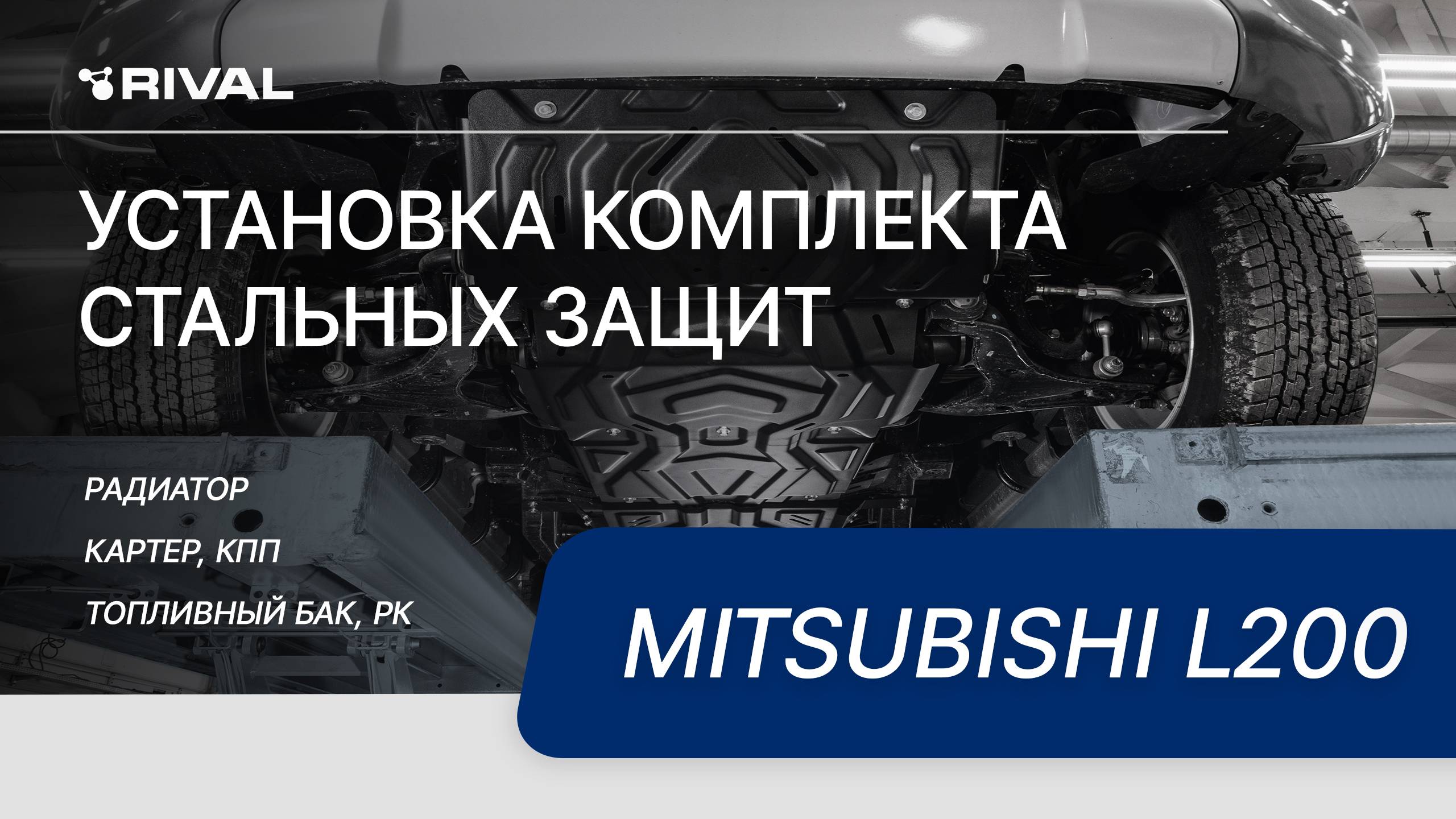 Видеоинструкция по установке комплекта стальных защит на автомобиль Mitsubishi L200 2015 - Защита радиатора + комплект крепеж, RIVAL, сталь, Mitsubishi L200 2015-2019/2018-, V - 2.4d; 2.4d H.P. Артикул: 111.4046.2 Защита картера + комплект крепеж, RIVAL, сталь, Mitsubishi L200 2015-2019/2018- , V - 2.4d; 2.4d H.P. Артикул: 111.4041.2 Защита КПП + комплект крепеж, RIVAL, сталь, Mitsubishi L200 2015-2019/2018-, V - 2.4d; 2.4d H.P. Артикул: 111.4047.2 Защита РК + комплект крепеж, RIVAL, сталь, Mitsubishi L200 2015-2019/2018-, V - 2.4d; 2.4d H.P. Артикул: 111.4048.2 Защита топливного бака + комплект крепежа, RIVAL, сталь, Mitsubishi L200 2015-2019/2018- , V - 2.4d; 2.4d H.P. Артикул: 111.4015.2