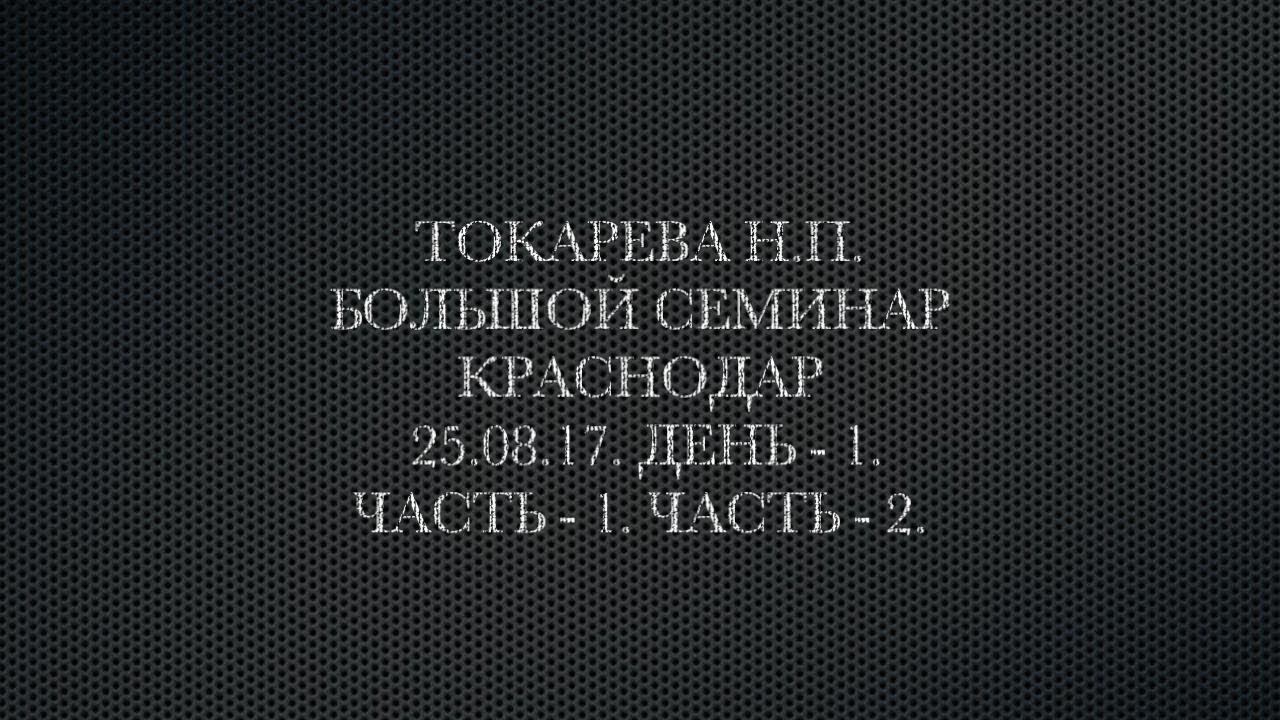 Токарева Н.П. Большой семинар. Краснодар. 25.08.17. День - 1. Часть - 1. Часть - 2.