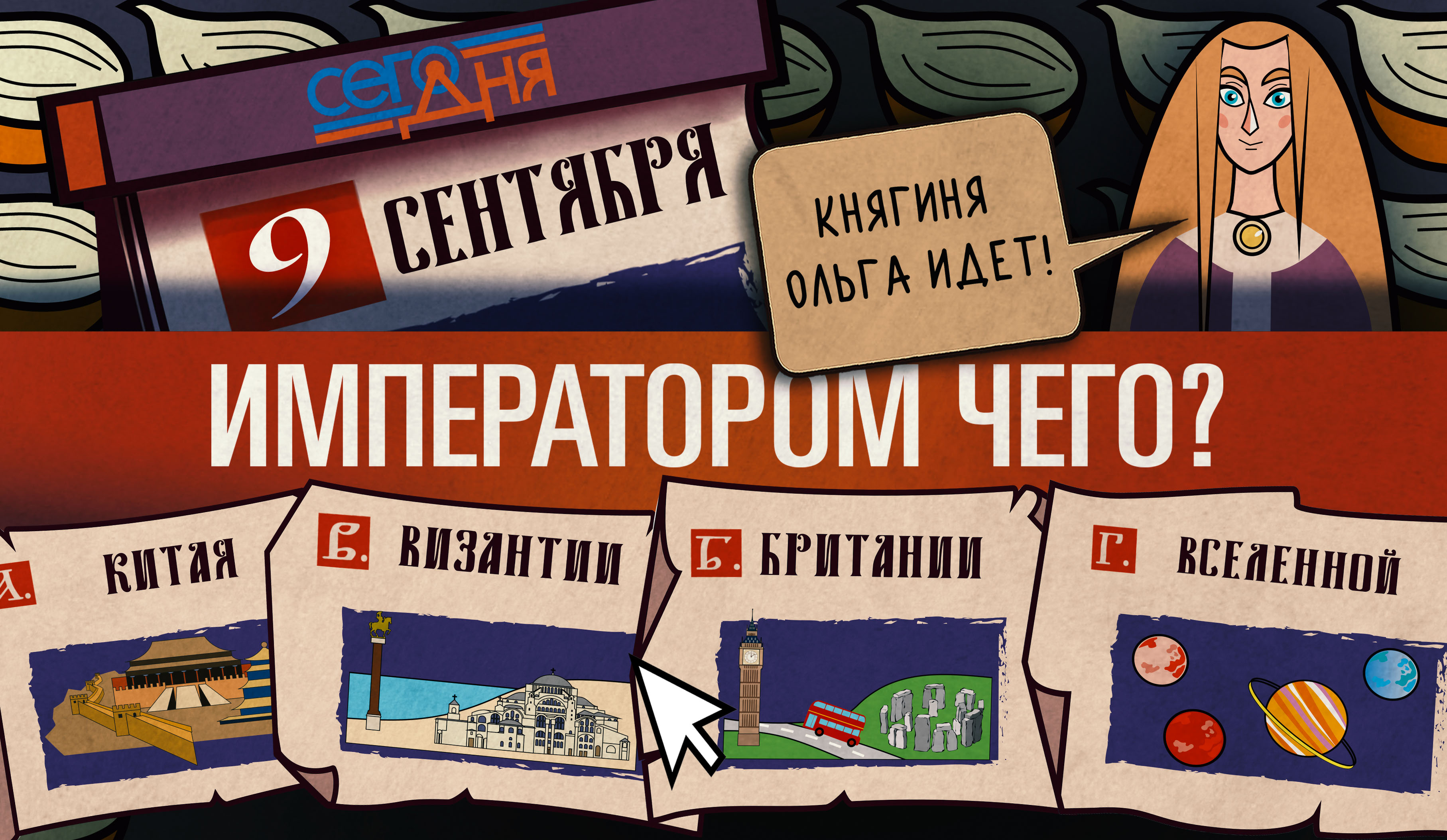 Всероссийский день лука! Как думаете, какого именно – того, который едят, или того, из которого стреляют? С каким же императором встретилась Княгиня Ольга? Отгадай, что случилось «Сего дня»!
