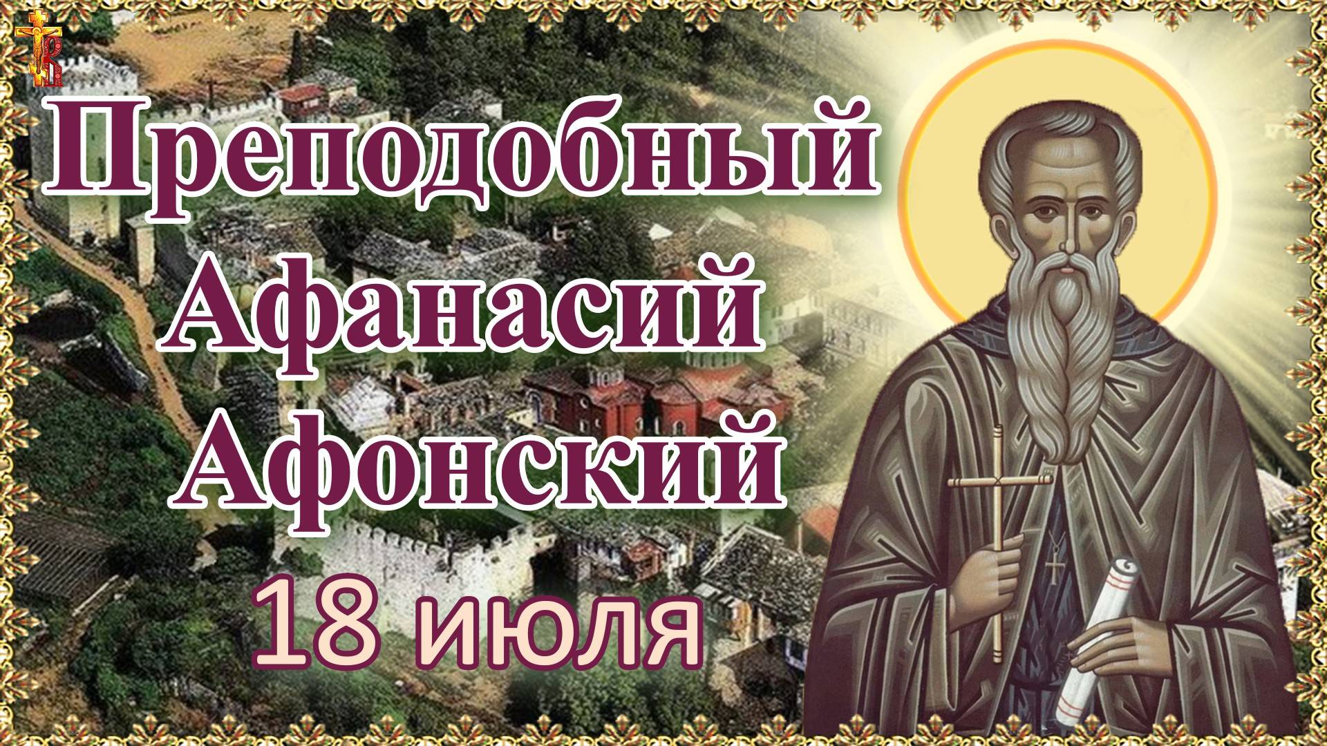Преподобный Афанасий Афонский. Память 18 июля. Источник: https://azbyka.ru/days/sv-afanasij-afonskij Икона Пресвятой Богородицы "Экономисса" или "Домостроительница". 18 июля. https://youtu.be/Z4bOlQ8K7dA Батюшка Сергий Радонежский. 8 октября, 18 июля. https://youtu.be/GlGZ8kKjg1c Прп. Афанасий Афонский (†1000) родился в Трапезунде, получил образование в Византии. Приняв постриг в Киминском монастыре, с усердием исполнял монастырские послушания, переписывал священные книги. В 960 г. поселился на Афоне, спустя несколько времени основал общежительный монастырь со строгим уставом, где и был игуменом. Прославился даром чудотворений и прозорливости, удостоился явлений Богородицы. Погиб при обрушении храма во время строительства. Его нетленное тело три дня оставалось без изменений, а истекшая из раны кровь исцеляла больных. При жизни святой Афанасий был неоднократно удостоен видения Божией Матери, стяжал дары прозорливости и чудотворений: он предвидел будущие события, в том числе свою кончину, крестным знамением исцелял тяжелобольных, молитвой прекращал нашествие саранчи, изгонял нечистых духов. Преподо́бне о́тче Афана́сие, моли́ Бо́га о на́с.