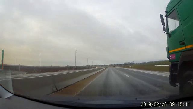 Дорожные рабочие неосмотрительно ходят на скоростной трассе по второй полосе
