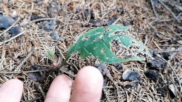 Магнолия - зимние сеянцы в саду - листья почти съедены. июнь 2023