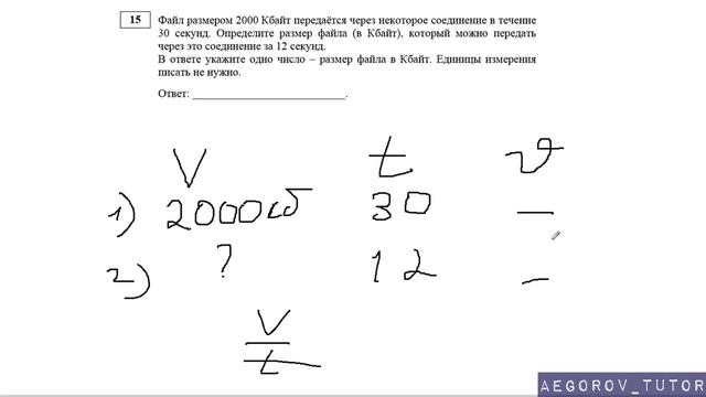 Разбор задания № 15 из ДЕМО варианта 2018 по ОГЭ информатике и ИКТ Тема задачи "Скорость передачи данных" Добавляйтесь в группу https://vk.com/aegorov_tutor Предложить задачу для разбора https://vk.com/topic-116207750_38371445 Задать вопрос по задаче из ОГЭ https://vk.com/topic-116207750_37403077