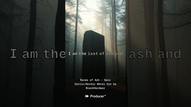 Runes of Ash (Epic Celtic/Nordic Metal Cut) Epic Celtic–Nordic metal ballad: dynamic arc from sparse acoustic and low war drums into soaring twin-lead electric guitars; heavy rhythm guitars with chug and open-string drones; bodhrán-style tom patterns, occasional double-kick lifts; cinematic strings and low choirs; tin whistle/uillean pipe-style lead motifs doubling guitar; atmospheric pads and wind FX; wide hall reverb; mix for grandeur and clarity, E Minor, 82 bpm https://www.producer.ai/BlackHardwar https://songly.gift/ru/app/videos/create https://sinonim.org/song#res Lyrics Intro - Atmospheric Acoustic guitar with distant war drums Verse 1 Upon the moor where ravens call I stand among the broken stone The mead hall lies beneath the pall Of winters wind, of winters bone The fires fade, the sagas end No sword can make this kingdom mend Chorus I am the last of ash and steel The final voice of wyrd's long wheel Through fjord and frost I've walked alone To find the runes, rewrite the throne But all I hold turns dust and grey The gods have turned their eyes away Verse 2 The druids spoke of ancient ways Of patterns carved in elder wood I've searched through countless weary days For power that might stem this flood But kingdoms fall like autumn's breath And I am just the herald's death Chorus I am the last of ash and steel The final voice of wyrd's long wheel Through fjord and frost I've walked alone To find the runes, rewrite the throne But all I hold turns dust and grey The gods have turned their eyes away Guitar Solo Epic electric guitar with Celtic melody Bridge The ravens know what I cannot change That time devours hall and crown No warrior's hand can rearrange What wyrd has written, pulling down I'll lay my blade upon the earth And sing the death song of our worth Final Chorus - Building I was the last of ash and steel The final turn of wyrd's dark wheel Through fjord and frost I walked alone Found only wind and crumbled stone Now all I am turns dust and grey The saga ends in winter's grey Outro - Fading Acoustic guitar, distant drums fade The ravens call... the ravens call... I am the witness to the fall