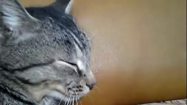 Кот танцует головой.