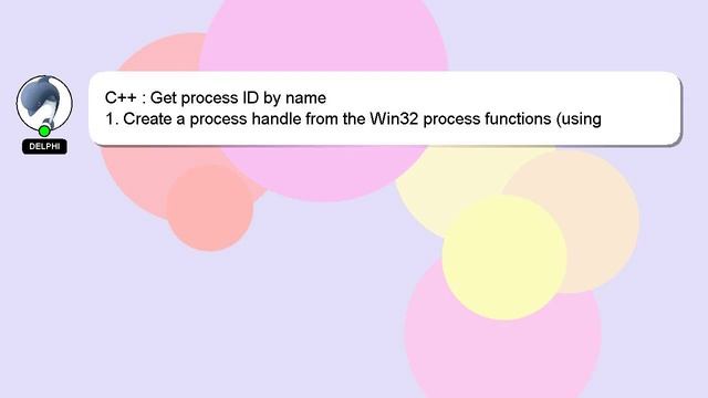 C++ : Get process ID by name To Access My Live Chat Page, On Google, Search for "hows tech developer connect" As I promised, I have a secret feature to share with you. This is a YouTube's feature which works on Desktop. First, Make sure the video is currently in playing mode. Then, type the letters 'awesome' on the keyboard. You will see a flashing rainbow instead of a regular progress bar on YouTube. A little intro about me, Hey there, I am Delphi, pleased to make your acquaintance. I am available to help you find solutions to your inquiries. C++ : Get process ID by name Please feel free to comment or chat with me for more detailed information. If you have an answer or any relevant information to share, please comment below. Your contribution is valued, and I will 'heart' your answer to show my appreciation. : ID C++ process by name Get