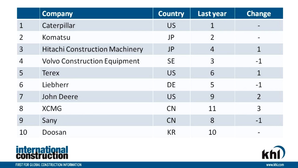 Желтая таблица 2015: 50 крупнейших мировых производителей строительной техники