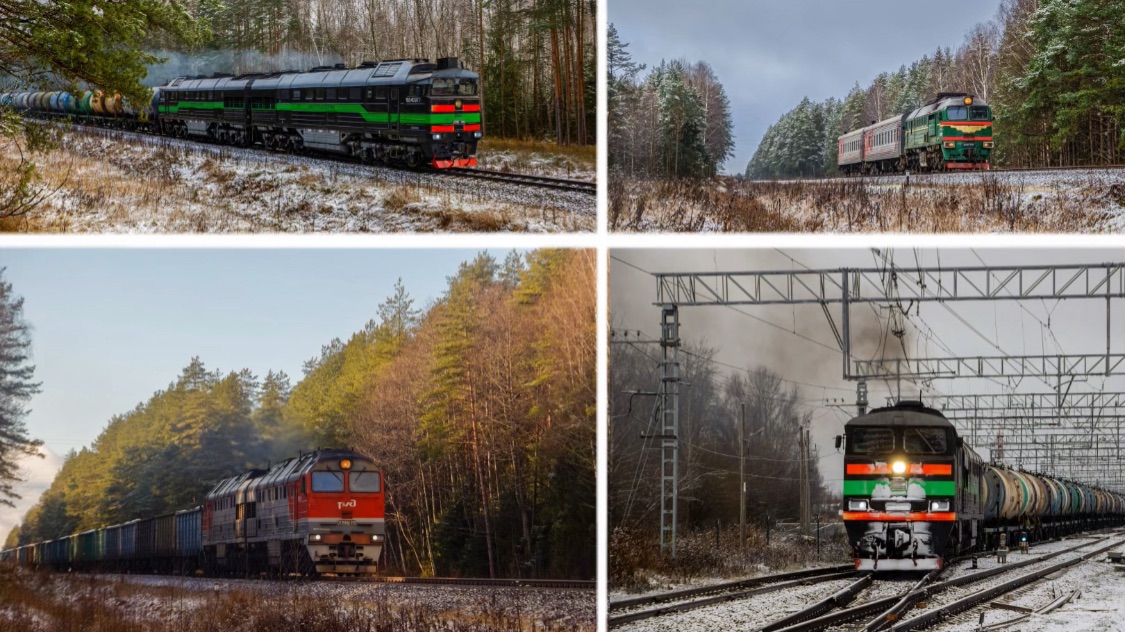 Снято 15 ноября 2025 г. На участке Савёлово-Белый городок 00:00 Интро 00:05 «Мощный старт» 2ТЭ116-1702 отправляется со станции Савёлово 00:55 ДМ62-1797 с пригородным поездом Углич-Савёлово 01:17 2ТЭ116-1701 с наливным составом, на Савёлово 01:36 ДМ62-1797 с пригородным поездом Савёлово-Углич 01:59 2ТЭ116УД-055 с грузовым составом
