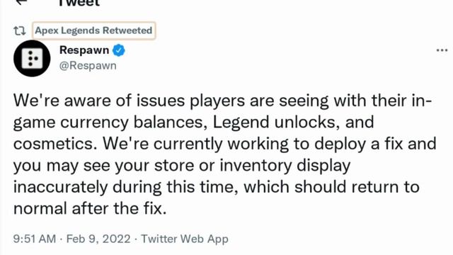 Apex Legends In-Game Currency Bug Server Issues, Apex Coins and Legend Tokens