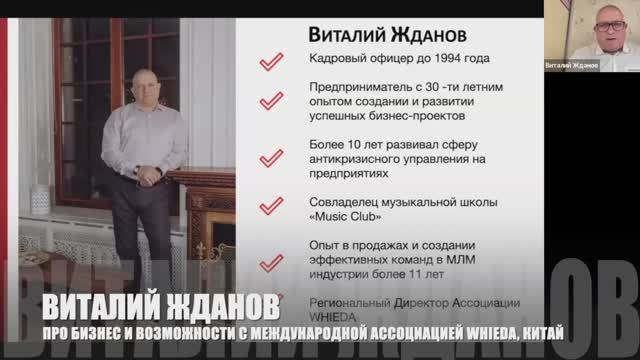 Открытая Zoom-встреча по готовому бизнесу с Китаем от 06.08.2025 (среда): REGIONAL DIRECTOR ВИТАЛИЙ ЖДАНОВ (г Тюмень) ⭐️ Кадровый офицер ⭐️ Предприниматель с 30-летним стажем ⭐️ Совладелец музыкальной школы ⭐️ Лидер Сети в квалификации REGIONAL DIRECTOR ⭐️ Годовой чек более $35,000 в бизнесе с Ассоциацией WHIEDA Связь со мной: +79046446440 и никнейм @kirill_koviazin (WhatsApp / Telegram / соцсети) #WHIEDA #HEALTHPRIORITY #FOHERB