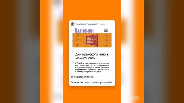 Всем добрый вечер. Быть может вам эта информация будет полезна. Дни иранского кино в «Иллюзионе» С 6 по 9 июля в кинотеатре «Иллюзион» все желающие смогут познакомиться с игровыми и анимационными фильмами современных иранских режиссёров и темами, которые их волнуют. В программе из пяти фильмов можно встретить драму, раскрывающую темы семьи и отношений («Сара и Аида» / Sara ve Ayda, 2017), военную («Виллы» / Vilaeiha, 2017) и биографическую драмы («Хенас» / Henas, 2022), романтическую комедию («Романтическая история Эмада и Туби» / Romantism Emad va Tooba, 2019) и анимационный мюзикл («Ангел надежды» / Loupetoo, 2022). 7 июля состоится официальное открытие программы, которое посетят: Мунир Гейди — режиссёр фильма «Виллы», Мохаммад Хоссейн Садеги — продюсер анимационного фильма «Ангел надежды», Хади Эсмаили — заместитель по дистрибуции организации кинематографии «Суре», Казем Джалали — чрезвычайный и полномочный посол Исламской Республики Иран в Российской Федерации и другие гости. Мероприятие является частью проекта РОСКИНО при поддержке Минкультуры России «Дни зарубежного кино». Все фильмы будут демонстрироваться на фарси с русскими субтитрами. Вход свободный, по предварительной регистрации. https://illusion-cinema.ru/event-11487/ #2023 #москва #кино #бесплатно
