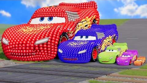 Большие И Маленькие Цветные Молнии Маккуин Из Шаров против Поездов | BeamNG. Drive