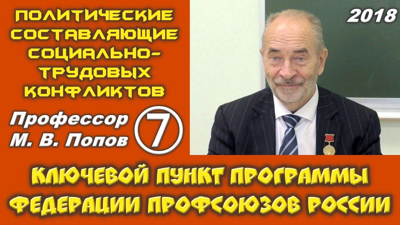 М.В.Попов. 07. Ключевой пункт Программы Федерации профсоюзов России. Курс ПССТК. СПбГУ, 2018.