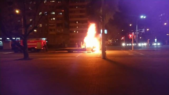 Полностью сгорел эвакутор на светофоре на пересечении улиц Беды и Некрасова в г.Минске #пожар #эвакутор #сгорел #Беды #Некрасова #Минск #автомобиль #возгорание #автоэвакутор #машина #сгорела #tow #truck #fire